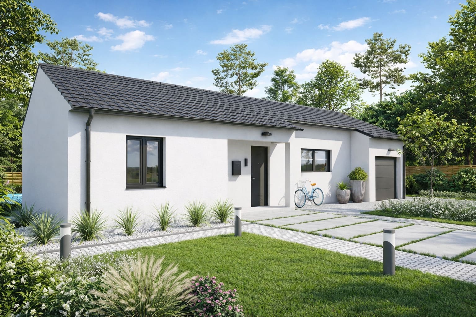Vous êtes à la recherche d’une maison de plain-pied au design moderne et adapté à la vie de famille ? Le modèle AGONA saura vous séduire avec sa large façade de plus de 15m et sa cuisine ouverte sur salon-séjour traversant baigné de lumière grâce à sa baie coulissante.