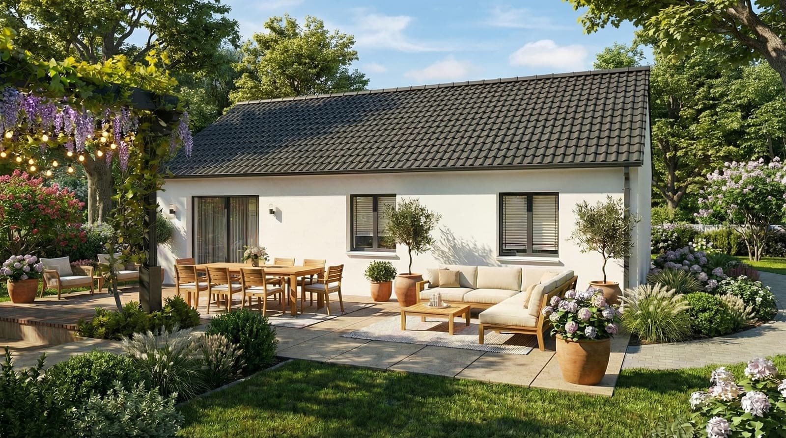 Le modèle My First 79 city est une maison de plain-pied traditionnelle qui offre une surface habitable de 79m2. Idéale pour les personnes à la recherche d’un espace fonctionnel et économique, cette maison neuve est conçue pour répondre aux exigences de la RE2020, en offrant une efficacité énergétique optimale et donc un coût d’usage et d’entretien très faible.