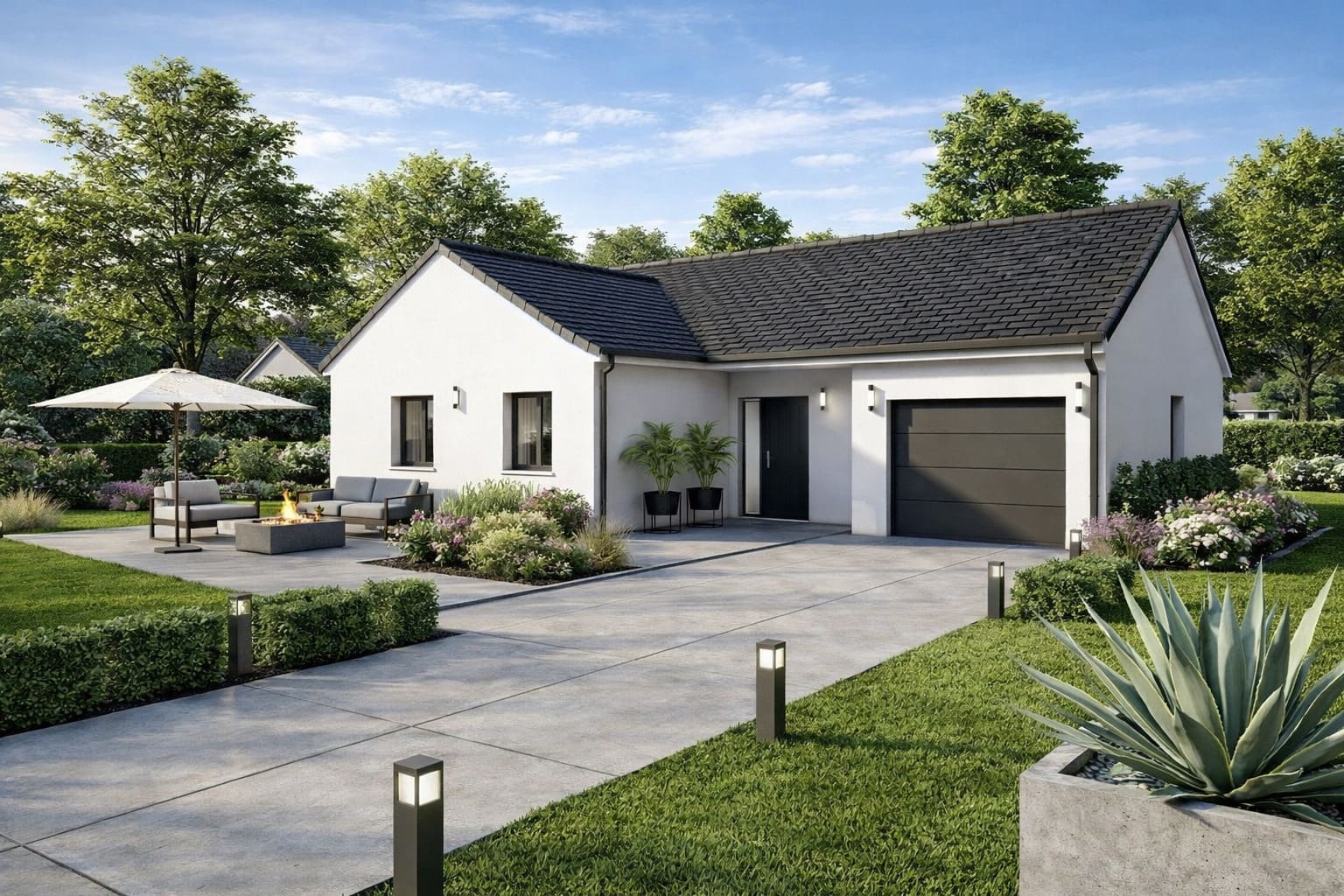 Nous vous proposons cette maison neuve, modèle MINDORO, une conception architecturale pensée avec soin pour s’adapter parfaitement à des terrains de dimensions réduites. Avec une surface habitable de 96 m², cette maison de plain-pied en forme de « L » optimise chaque mètre carré disponible, offrant ainsi une solution idéale pour ceux qui cherchent à maximiser l’espace sans compromettre le confort et l’esthétique.